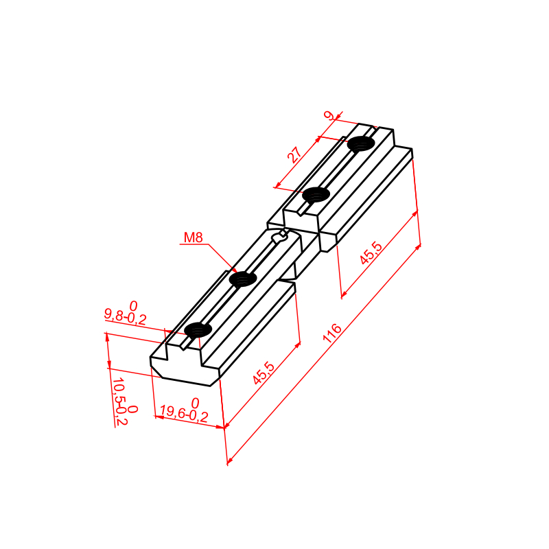 Tinkamas profiliams, kurių kanalo dydis yra 10 mm, sujungimams.