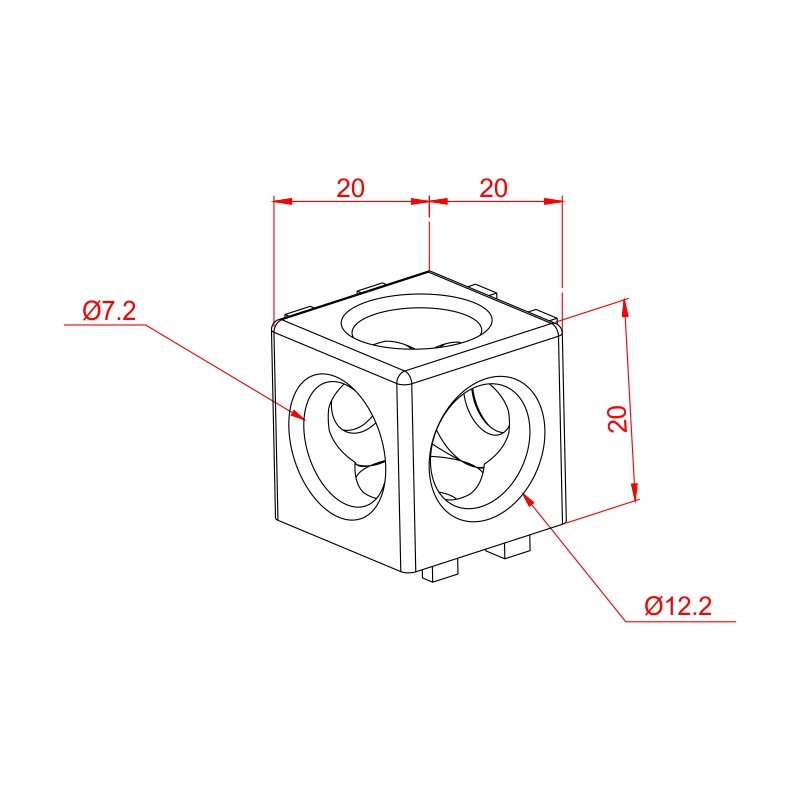 Galima sujungti tris 20x20 profilius su 6 mm grioveliu.